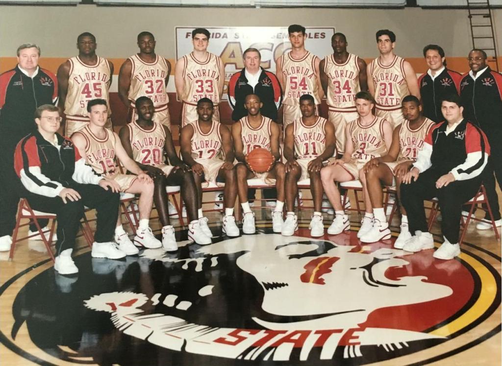 L’effectif 1992 de Florida State, avec Charlie Ward #17, Bob Sura #3, Sam Cassell #10 et Doug Edwards #32. Crédit : FSU