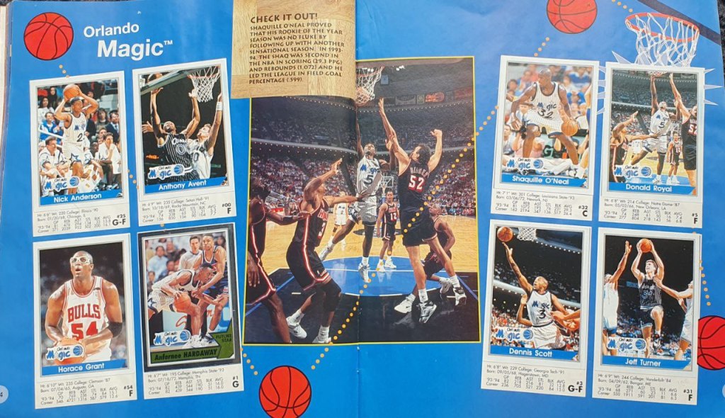 Les rookies n’ont pas leur sticker, comme c’est habituellement le cas. Nous sommes en 1994, année de la draft de Glenn Robinson, Jason Kidd et Grant Hill, sélectionnés en première, deuxième et troisième position. Cette cuvée comprend également Juwan Howard, Eddie Jones, Donyell Marshall, Charlie Ward ou encore Jalen Rose.